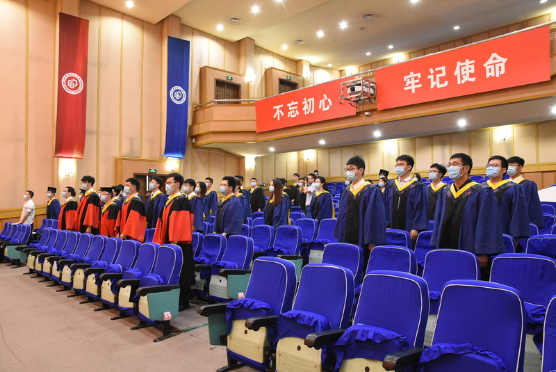 典礼在庄严的国歌声中拉开帷幕。随后,校、院领导共同为学院本、硕、博毕业生拨穗正冠,向他们赠送毕业纪念卷轴,并合影留念。典礼在振奋人心的校歌声中落下帷幕。