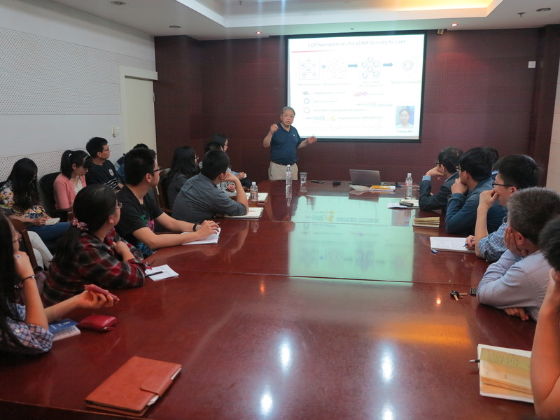 On invitation of the School of Pharmacy of ECUST, Dr.Huang Lifu, a distinguished professor from Fred College of Pharmacy,University of North Carolina,paid an academic visit to ECUST and made a report entitled “Nanoparticle delivery of drugs and genes to desmoplastic tumors”.With vivid examples, professor Huang exhibited the unique charm of the discovery of innovative drugs driven through theoretical simulation, suggesting that researchers should have the problem awareness in their studies and try to apply new technologies to deal with the problems.The academic lecture was chaired by professor Gao Feng.